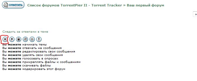 А как разрешить пользователю удалять первое сообщение, админ-то может все. Т.е. пользователь создал тему, и решил потом ее удалить. В левом углу он видит только восклицательный знак - сообщить о нарушении в теме