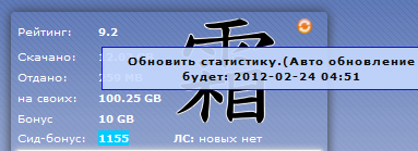 Статистика пользователя в шапке сайта. Что умеет: Обновление статистики на Ajax. Кеширование статистики . Удобный вывод статистики. Минимальная нагрузка. Цена договоренная (по ICQ). ICQ: 389814823 Skype: frost444world Цена: 10$